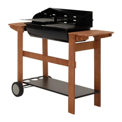 Informations Techniques : Dimensions : L. 128 x l. 50 x H. 102 cm Surface de cuisson : L. 70 x l. 40 cm Matières : Acier & Bois Spécificités : Pratique & Utile Barbecue à charbon de bois 2 grilles de cuisson Séparation pour une meilleure gestion du charbon 3 positions de grille Sur chariot en bois A