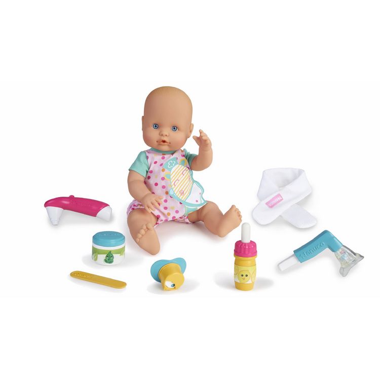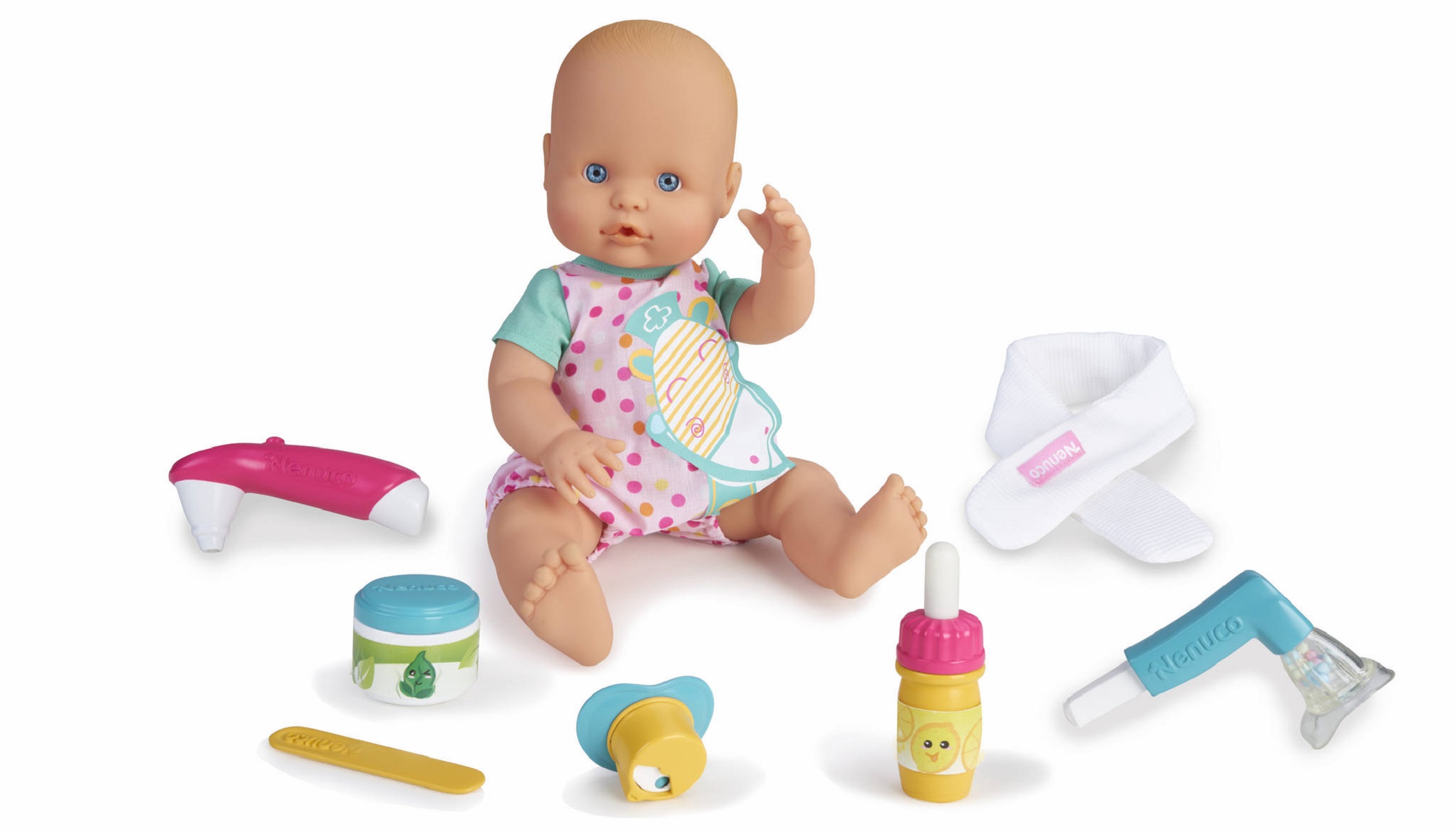 Ton bébé Nenuco est malade et a très mal à la gorge ! Utilise la mini-torche avec la vraie lumière et la languette pour ausculter Nenuco avant de le soigner. Afin qu'il guérisse rapidement, il faut que tu lui donnes tous les médicaments dont il a besoin : de la ventoline, des médicaments le matin, des gouttelettes au citron et de la pommade à la menthe afin qu'il respire mieux la nuit ! Prends bien soin de lui et câline-le afin qu'il retrouve la forme.