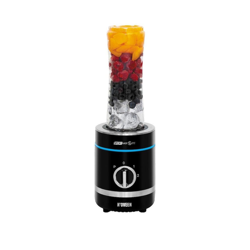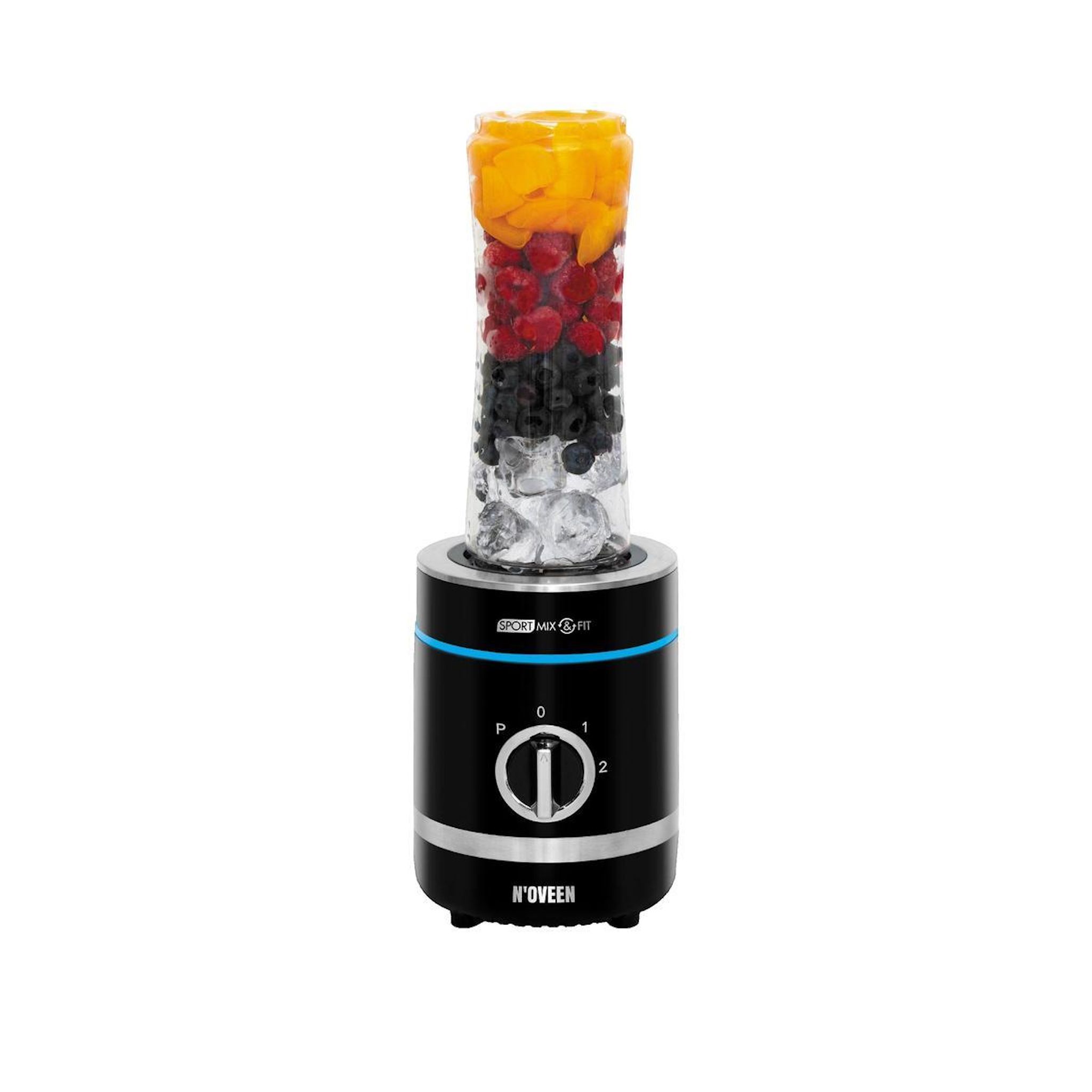 Le blender Sport Mix & Fit SB1000 X-LINE de la marque noveen est conçu pour les amateurs de smoothies et de préparations saines. Il dispose d'une puissance de 300 W et de lames améliorées qui broient facilement la glace et moudent herbes, graines, noix et café. L'appareil propose un mode de fonction