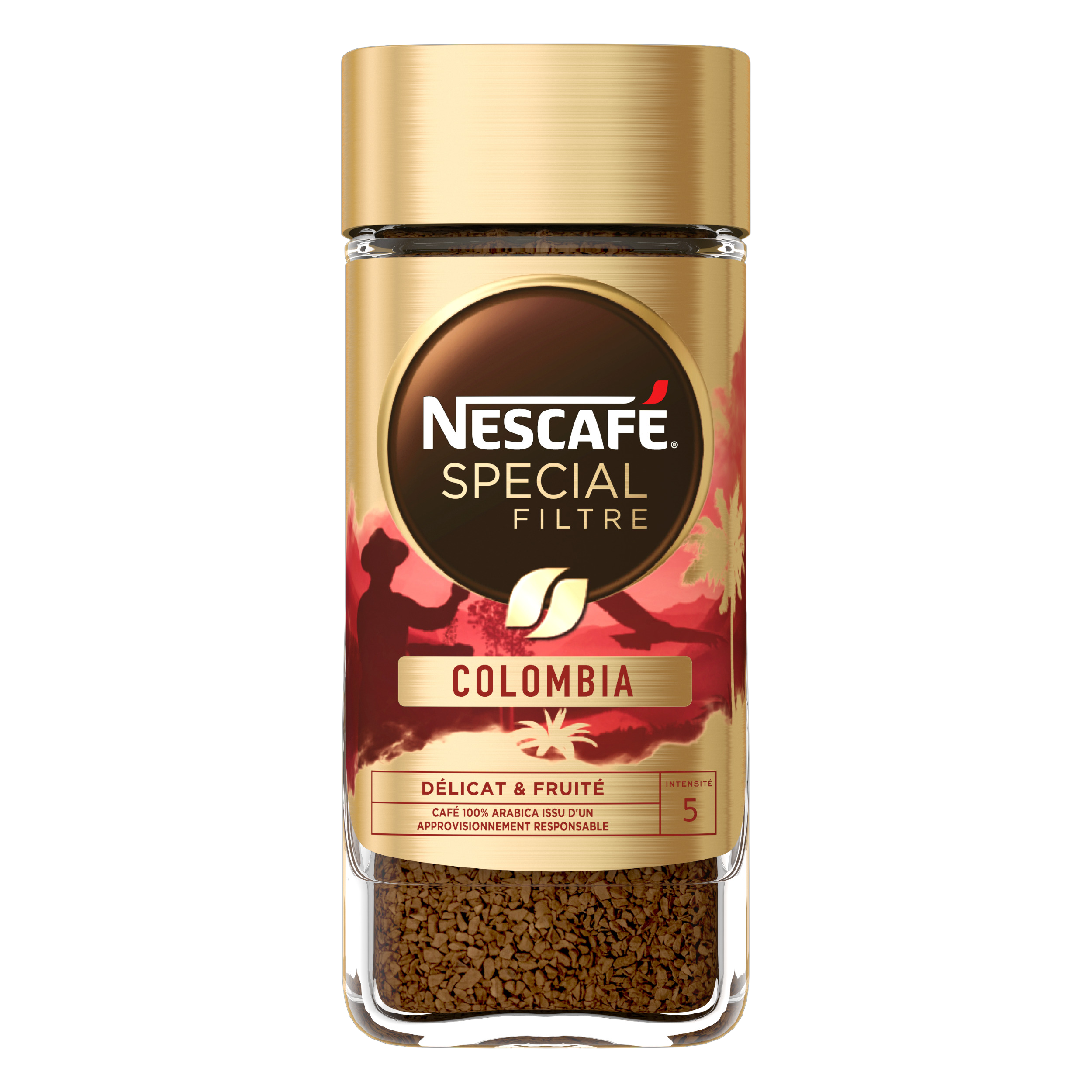 Café instantané Découvrez le nouveau NESCAFE SPECIAL FILTRE Origins Colombia. Un café de grande qualité, au profil 100% pur Arabica, cueilli à la main en Colombie, révélant de subtiles et délicates notes fruitées.Ses grains sont en provenance des meilleures origines, et s'inscrivent dans la démarche Grown Respectfully qui garantit un approvisionnement et une production responsables.