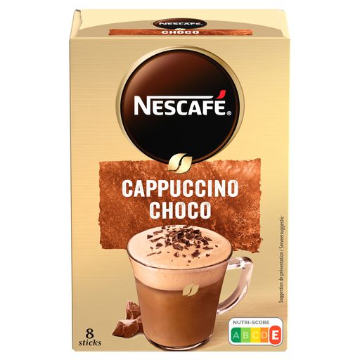 Grâce au savoir-faire de NESCAFÉ, profitez d'un moment de pure gourmandise en savourant un délicieux Cappuccino Choco. Nos experts café ont créé une recette gourmande aux ingrédients soigneusement sélectionnés : des cafés solubles de qualité alliant la finesse de l'Arabica et la richesse du robusta, le goût du chocolat et une mousse irrésistiblement onctueuse et généreuse.