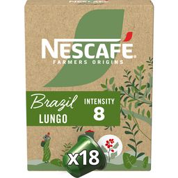 Découvrez NESCAFE Lungo Brazil, un café issu des producteurs brésiliens qui maitrisent parfaitement la culture et la récolte de leur café, pour vous offrir une tasse longue particulièrement douce et équilibrée. Savourez les notes de céréales grillées de ce café. Un format boîte contenant 18 capsules vous permet de préparer 18 tasses de NESCAFE Lungo Brazil avec votre machine NESPRESSO. Intensité 8/12.