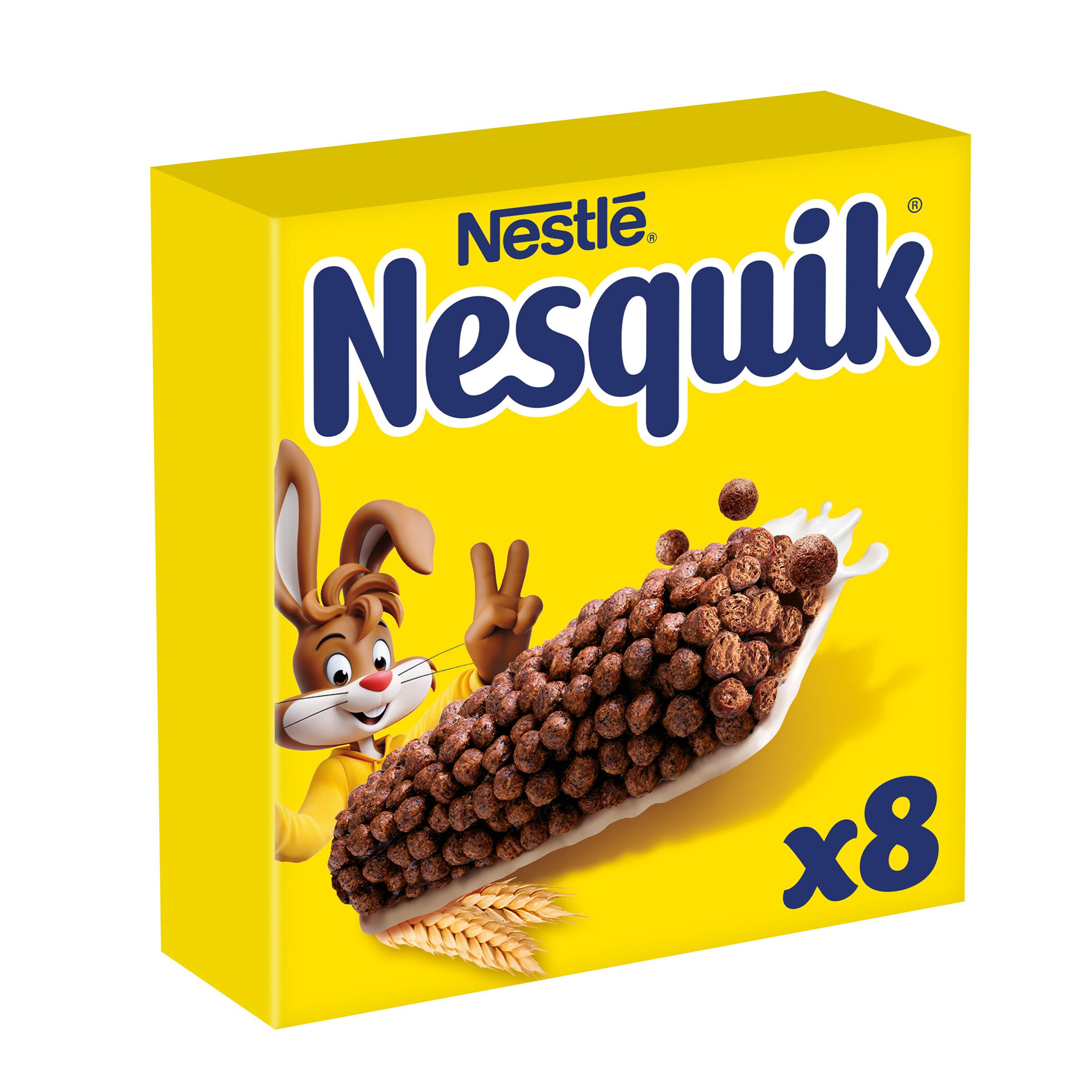 Découvrez les barres de céréales NESQUIK® en paquet de 8x25g pour encore plus de praticité ! Des barres de céréales au blé complet, au bon goût de cacao et de lait à emporter partout avec vous, pour le petit-déjeuner ou pour une petite pause gourmande. Enrichies en 5 vitamines, en calcium et en fer, elles sont aussi source de fibres, sans colorant et sans arôme artificiel. Et pour varier les plaisirs, découvrez les barres LION®, CHOCAPIC® et GOLDEN GRAHAMS®.
