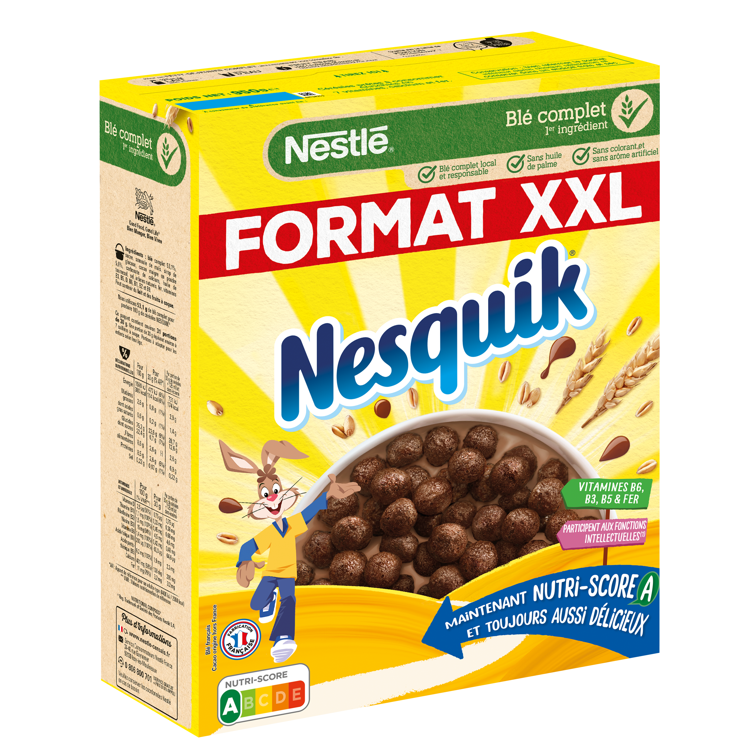 Sans huile de palme. Sans colorant et sans arôme artificiel. Source de fibres.