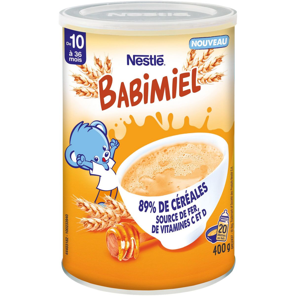 Découvrez BABIMIEL : des céréales au bon goût de miel conçues exprès pour bébé* dès 10 mois, qui, associées au biberon de lait habituel de bébé, participent à un petit déjeuner gourmand et équilibré et à son apport en céréales. Veillez à respecter l'appétit de votre enfant.