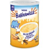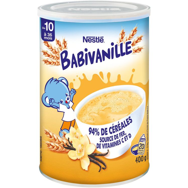 Découvrez BABIVANILLE : des céréales au bon goût de vanille conçues exprès pour bébé* dès 10 mois, qui, associées au biberon de lait habituel de bébé, participent à un petit déjeuner gourmand et équilibré et à son apport en céréales. Veillez à respecter l'appétit de votre enfant.