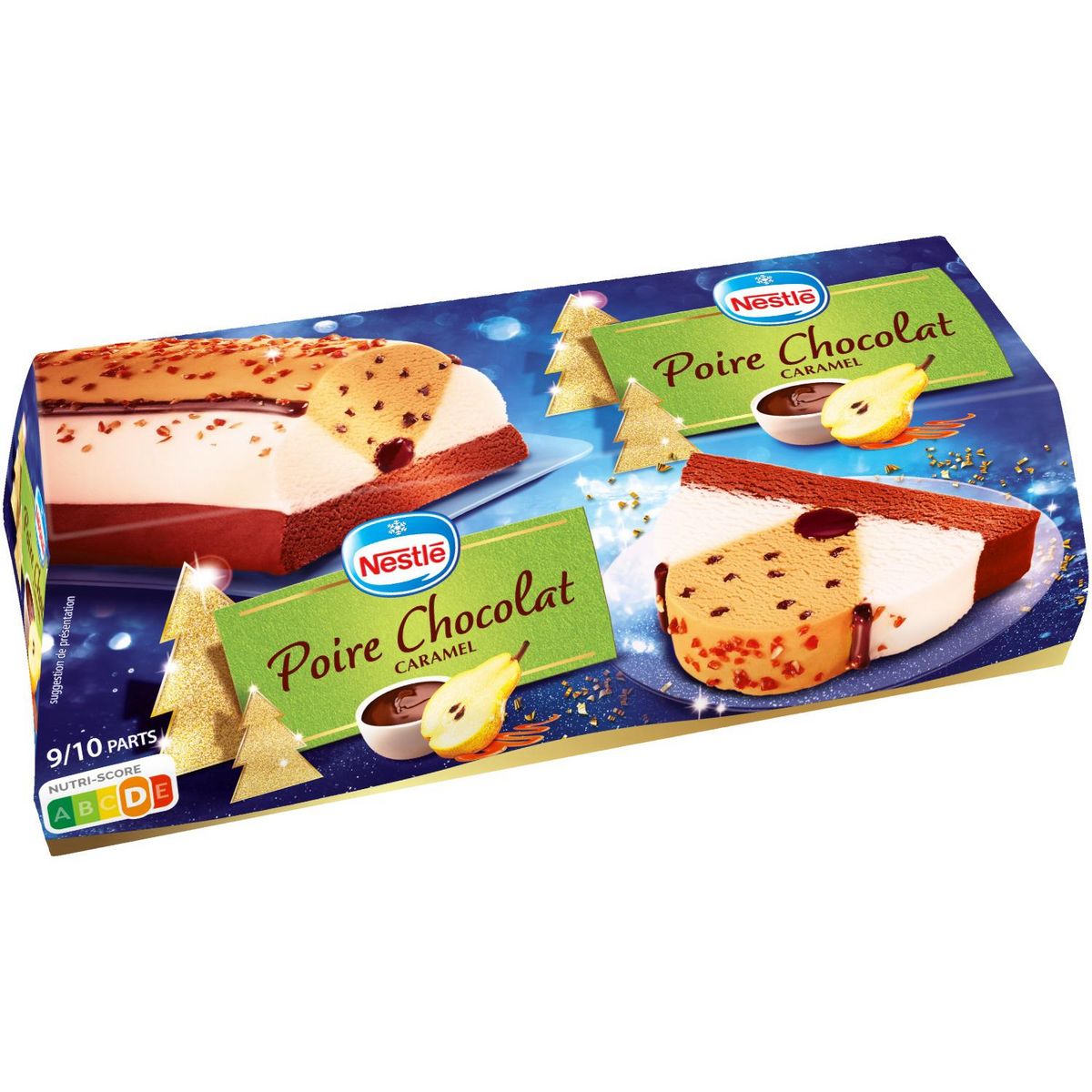 L'association irrésistible d'un sorbet poire avec deux glaces gourmandes : chocolat et caramel. Une bûche originale pour varier les plaisirs ! Recette sans arôme artificiel.