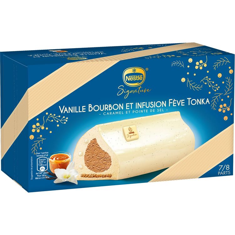 Bûche glacée vanille bourbon infusion fève tonka caramel et pointe de sel