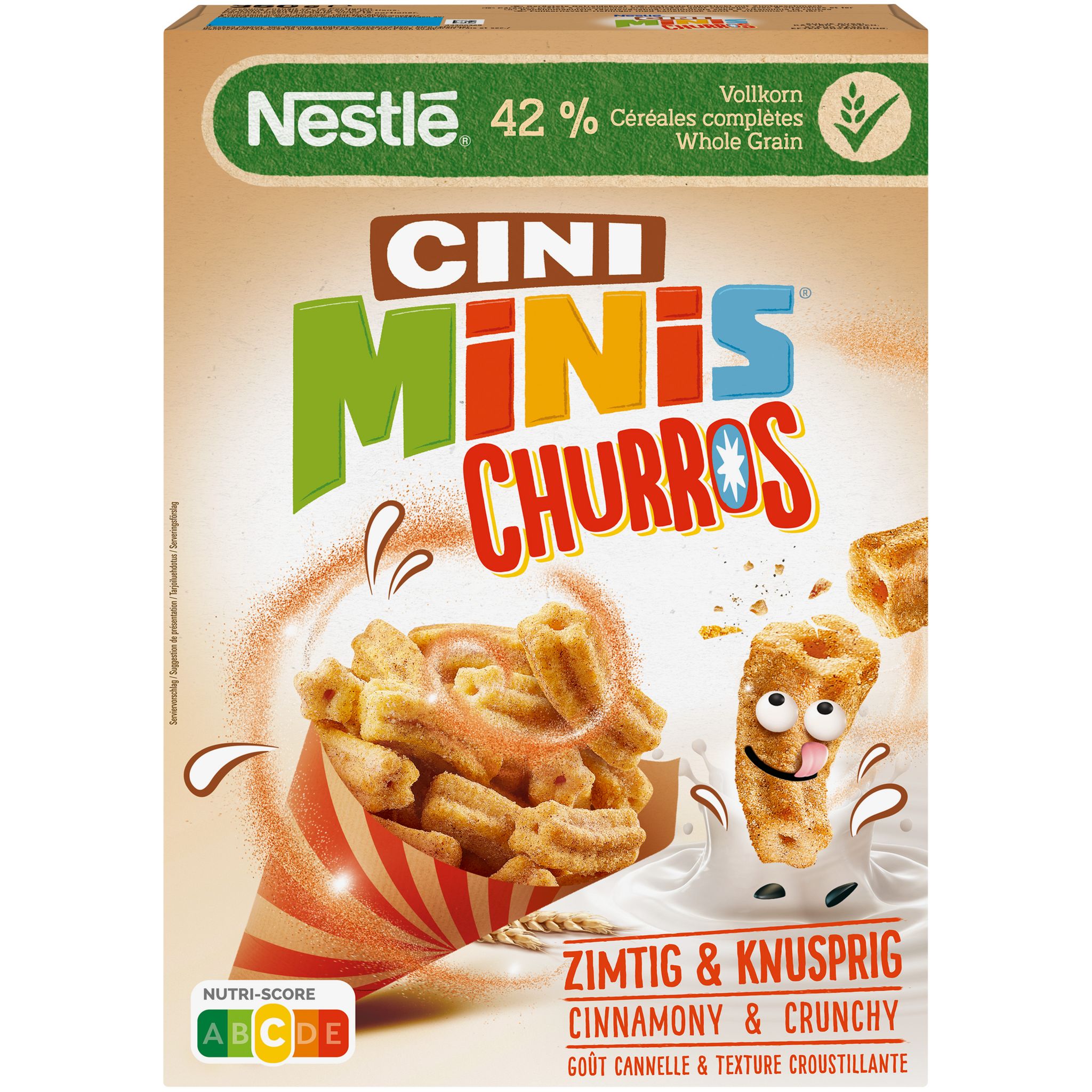 Découvrez les céréales CINI MINIS Churros, des céréales super croustillantes à la forme unique de churros et à la saveur irrésistible. Les céréales CINI MINIS Churros contiennent du blé complet, des vitamines, des fibres et des minéraux et sont sans colorant ni arômes artificiels !
