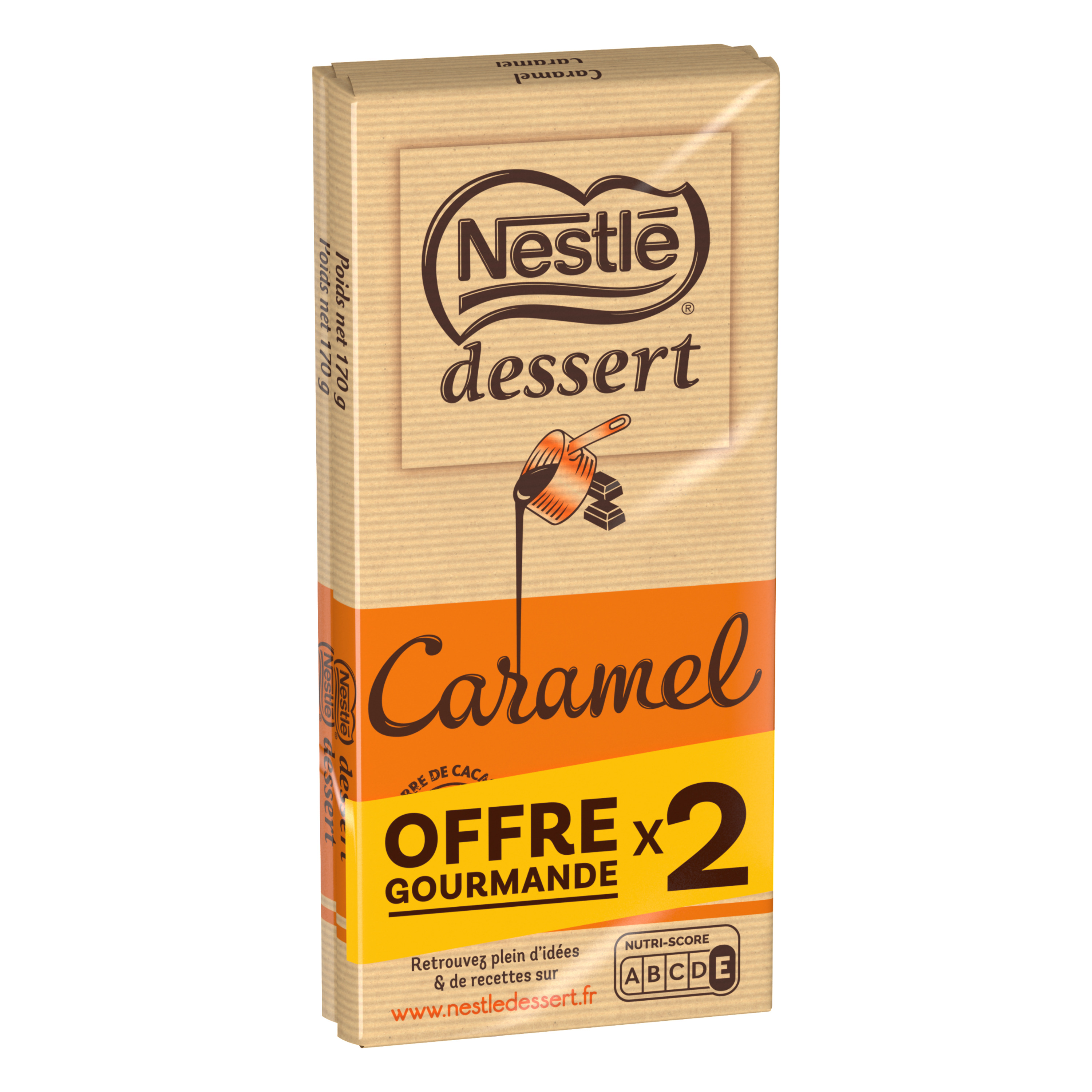NESTLÉ DESSERT Caramel est un chocolat au lait pur beurre de cacao associé à un caramel gourmand. C'est la tablette de chocolat à pâtisser idéale pour réaliser un fondant épatant ! Avec le Plan cacao, NESTLÉ DESSERT soutient les cultivateurs pour améliorer la qualité de leur cacao.Nouveau ! L'emballage des lots Nestlé Dessert est maintenant en papier, permettant ainsi une réduction de -34 tonnes de plastique*.*Volumes lots Nestlé Dessert 2024.