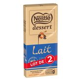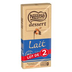 NESTLÉ DESSERT Lait est un chocolat au lait pur beurre de cacao au goût équilibré. C'est la tablette de chocolat à pâtisser idéale pour réaliser d'irrésistibles cookies ! Nouveau ! L'emballage des lots Nestlé Dessert est maintenant en papier, permettant ainsi une réduction de -34 tonnes de plastique*.*Volumes lots Nestlé Dessert 2024.