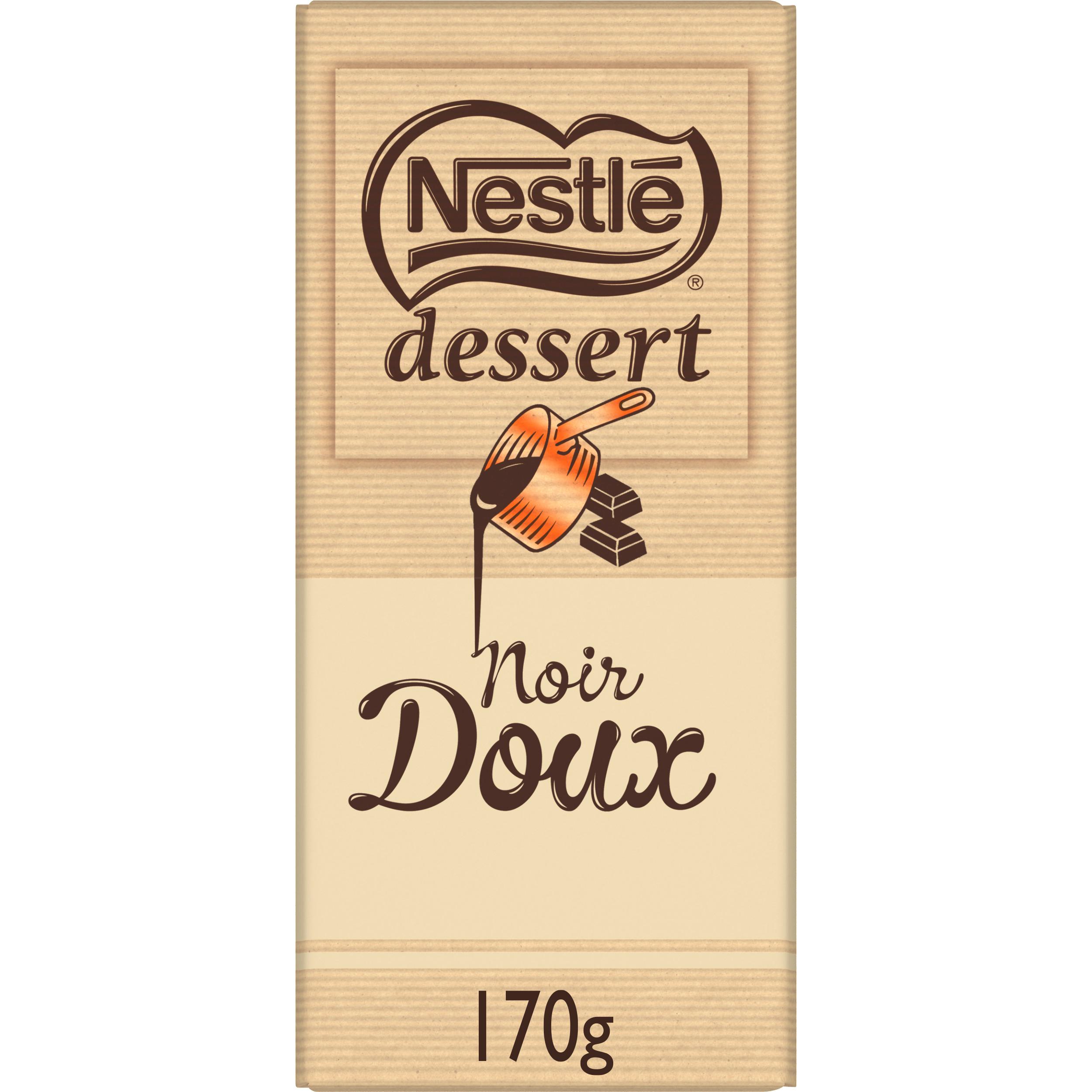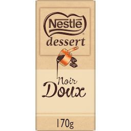 NESTLÉ DESSERT Noir Doux est un chocolat noir à 44% de cacao, au goût équilibré et doux. C'est la tablette de chocolat à pâtisser idéale pour réaliser des desserts simples et vraiment gourmands.