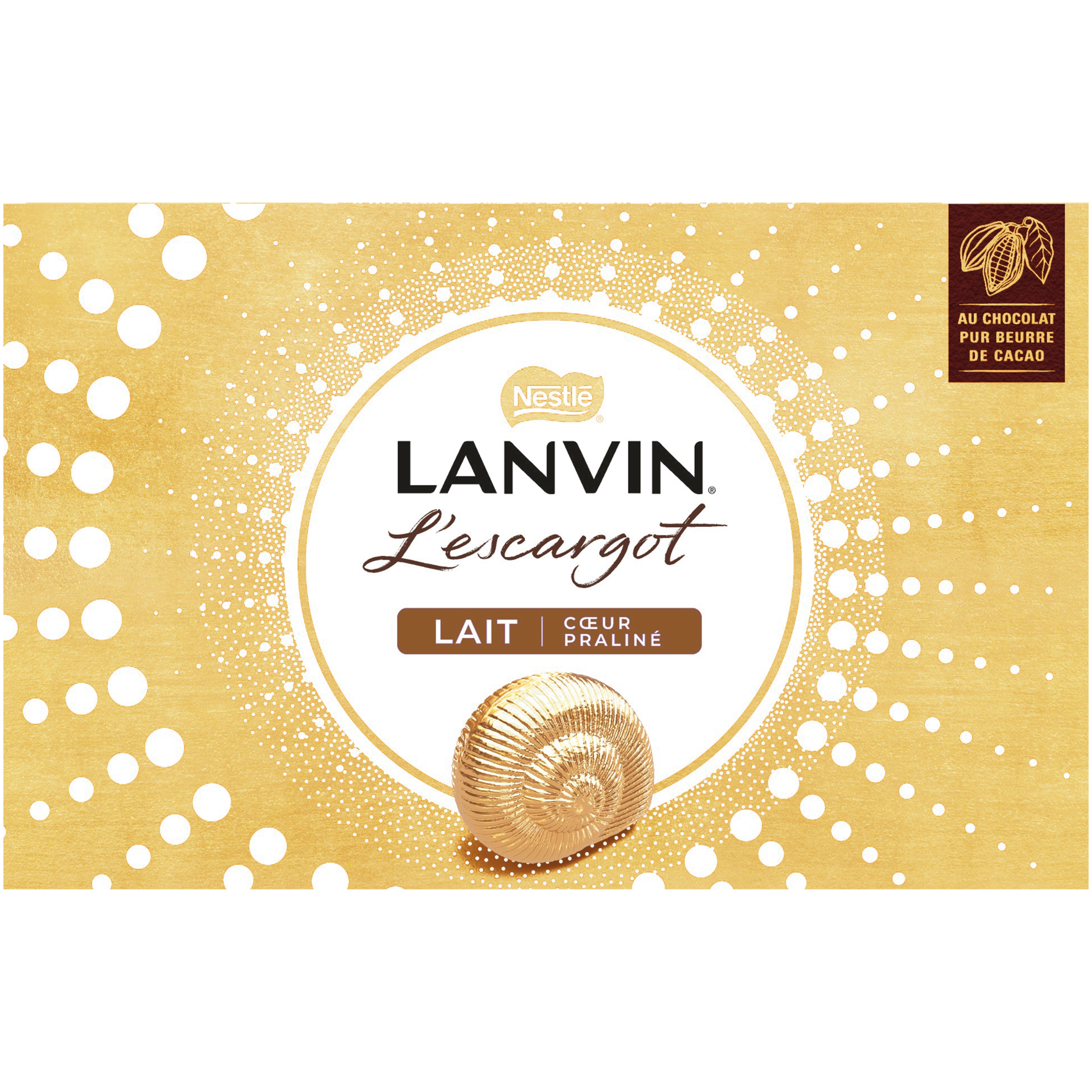 Créé en 1934 en Bourgogne, l'Escargot LANVIN vous séduira par son praliné onctueux né de la torréfaction des amandes et noisettes et par sa coque de délicieux chocolat au lait. L'inimitable praliné Lanvin se dévoile… Ce praliné riche, fruité, onctueux en bouche et fondant au palais est composé d'un mélange savamment dosé d'amandes et de noisettes sélectionnées, délicatement grillées afin de sublimer les arômes en bouche…