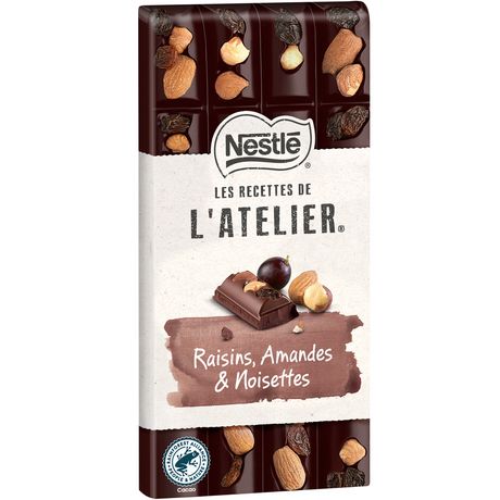 Les Recettes de l'Atelier Tablette de chocolat noir raisins amandes et noisettes