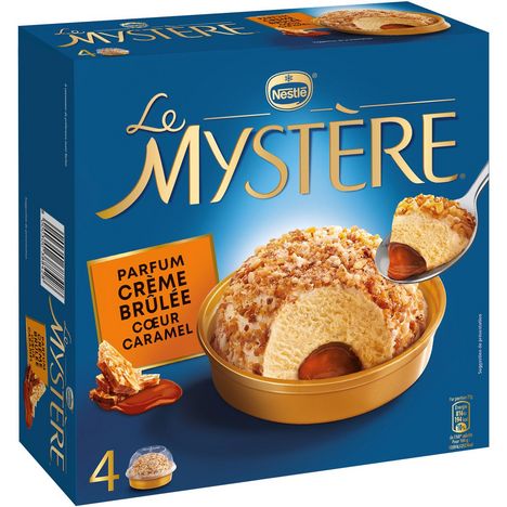 Découvrez le Mystère Parfum crème brulée. Commencez par sa robe de noisettes caramélisées délicatement craquante, puis plongez dans sa glace vanille délicieusement intense et pour finir, dévoilez son cœur de sauce caramel. Un dessert ultra gourmand pour terminer à merveille votre repas !