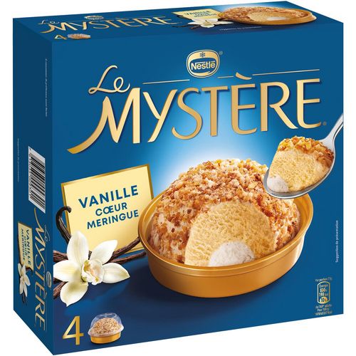 Découvrez l'original Mystère Vanille de Madagascar avec son cœur meringue. Commencez par sa robe de praliné délicatement craquante, puis plongez dans sa glace vanille de Madagascar délicieusement intense et pour finir, dévoilez son cœur de meringue. Un dessert glacé incontournable qui ravira tous vos convives et vous fera fondre de plaisir !