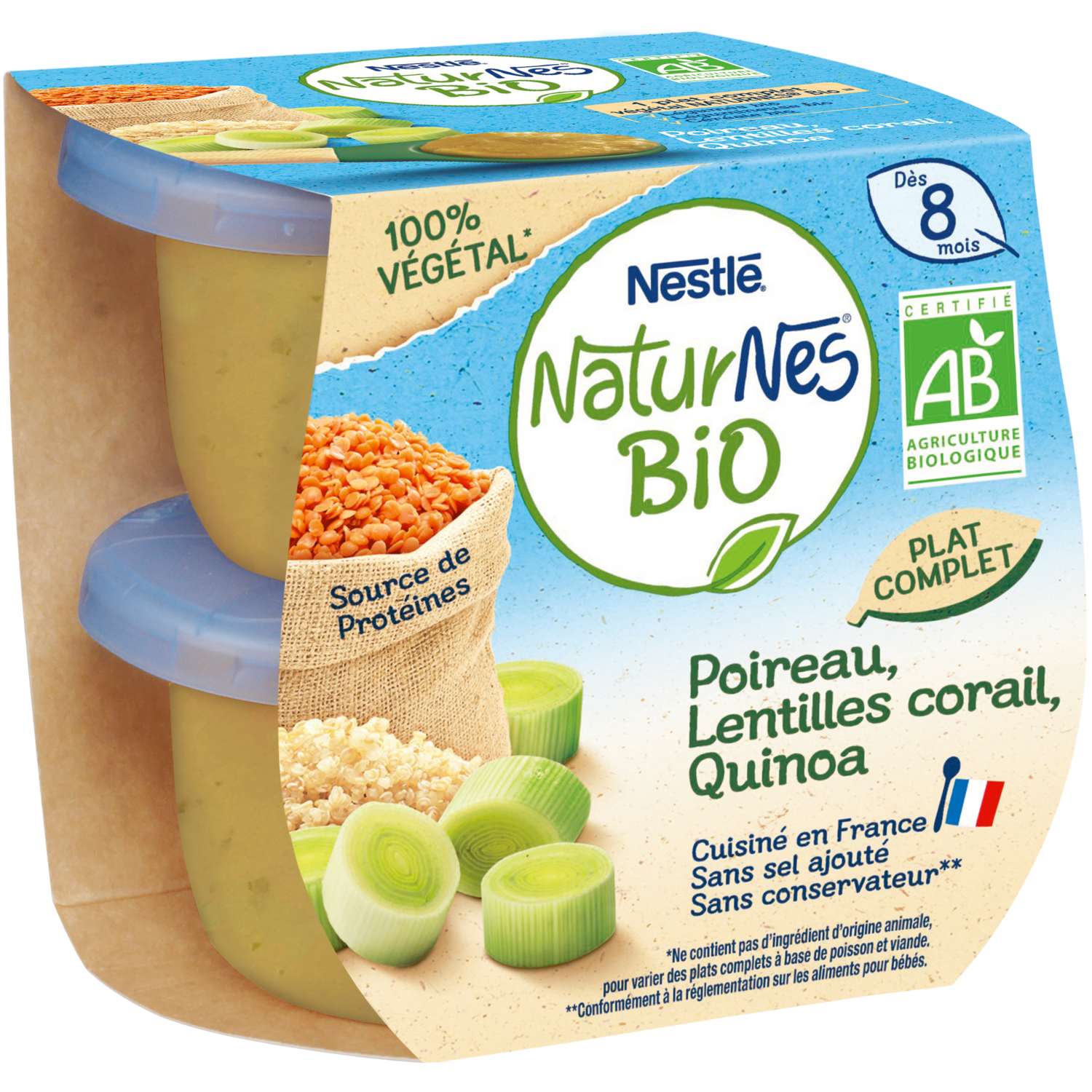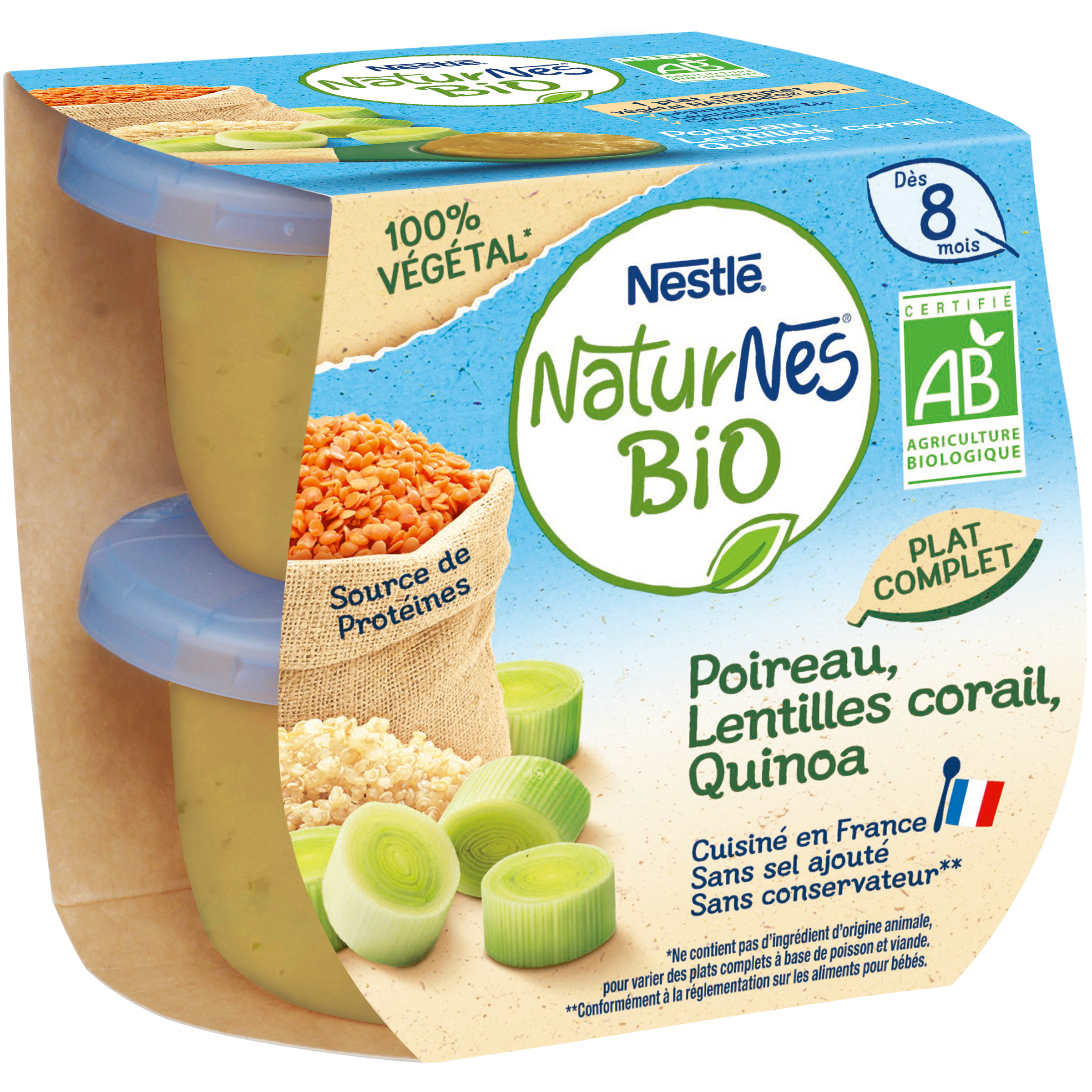 Purée à base de légumes, légumineuse et quinoa adaptée à bébé NATURNES BIO, c'est toute l'expertise de NATURNES avec des ingrédients agricoles issus de l'agriculture biologique. NATURNES BIO lance la 1ère gamme de plats complets 100% végétal afin de proposer une alternative à bébé pour varier des plats complets à base de viande et poisson. Un plat complet Végétal NATURNES BIO c'est l'association de légumes Bio, de légumineuses Bio et de céréales Bio. Chaque famille d'ingrédients est cuite séparément pour préserver toutes les saveurs et tous nos petits pots sont élaborés en France dans les Vosges.