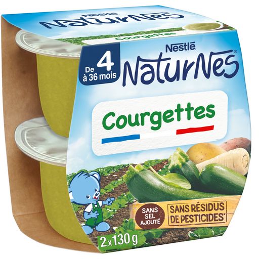 NaturNes® contribue à prendre soin de la nature pour en offir le meilleur à bébé. Nos légumes sont cultivés en plein champs et sélectionnés à maturité dans le respect du rythme de la nature, puis cuits doucement à la vapeur pour préserver au mieux les goûts. Ainsi, pour la diversification alimentaire de bébé, faites lui découvrir nos petits pots pour bébé à la courgette élaborés en France dans les Vosges! Entre 4 et 6 mois, demandez conseil à votre médecin pour bien démarrer la diversification.