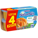 Ingrédients : Ingrédients: Potiron 40%, carottes 25%, eau de cuisson, pommes de terre 7,5%, semoule de riz, huile de colza.