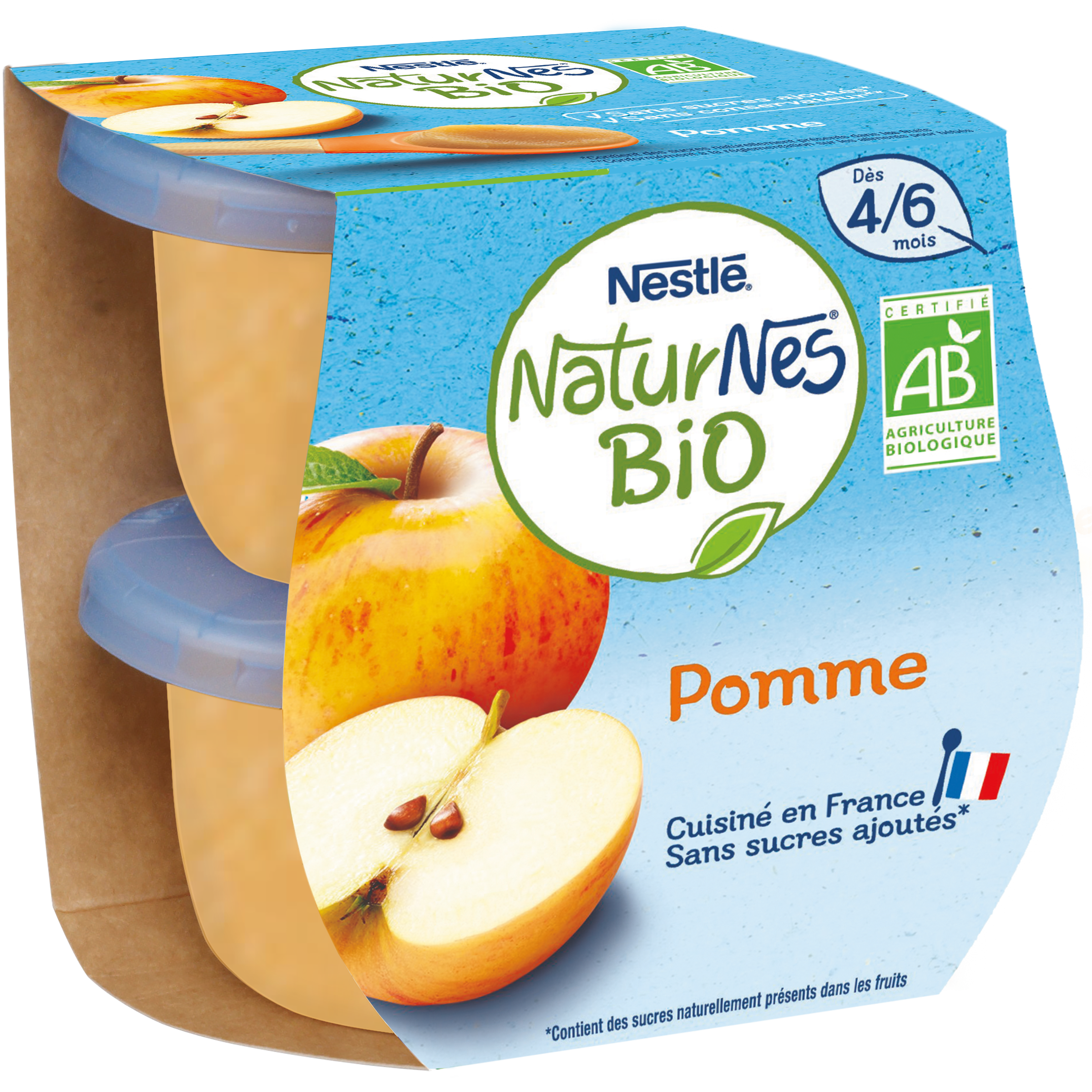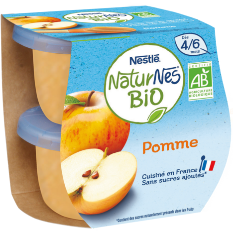Purée de fruits biologique adaptée à bébé NATURNES BIO, c'est toute l'expertise de NATURNES avec des fruits issus de l'agriculture biologique participant au respect de l'environnement et de la biodiversité. Nous sélectionnons nos fruits à maturité et nous en préservons le goût grâce à notre mode de cuisson douce. Tous nos petits pots sont élaborés en France dans les Vosges. Entre 4 et 6 mois, demandez conseil à votre médecin pour bien démarrer la diversification.