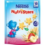 NESTLE NUTRISTARS dès 10 mois : Un encas délicieux qui aide bébé à manger de manière autonome. Important : Votre bébé doit être habitué à mâcher des aliments solides. Surveillez votre bébé lorsqu'il mange. Prenez soin de donner NutriStars à votre bébé lorsqu'il est en position assise. Sachet refermable. Préparation à base de céréales pour bébé.