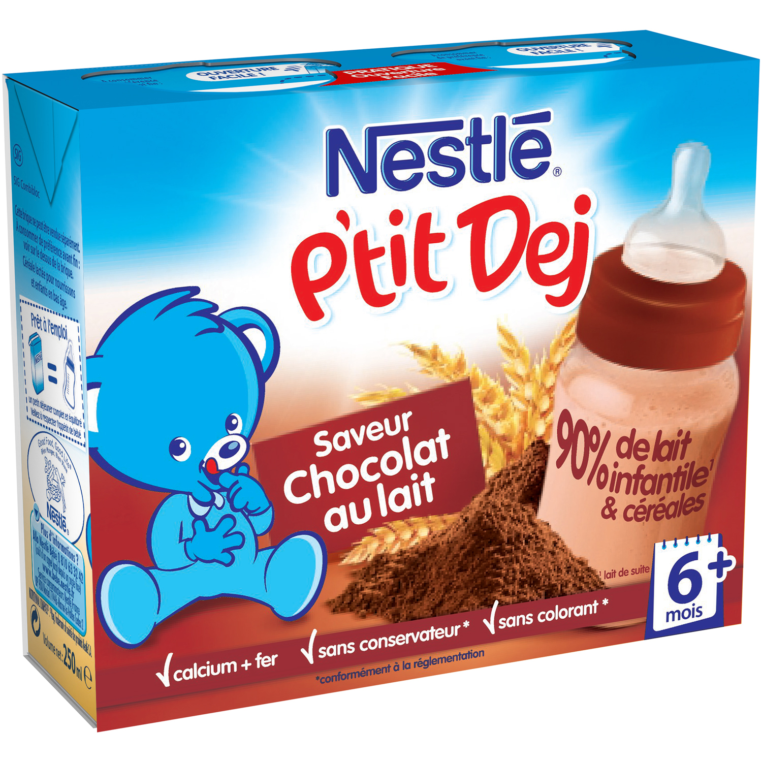 NESTLE P'TIT DEJ prêt à l'emploi : Un petit déjeuner complet et équilibré exprès pour bébé*. Le saviez-vous ? Dès 6 mois, NESTLE P'tit dej permet d'introduire en douceur le Gluten dans l'alimentation de votre bébé. Veillez à respecter l'appétit de votre bébé. Donnons leur le goût des bonnes choses. *Conformément à la réglementation sur les céréales infantiles Céréale lactée pour nourrissons et enfants en bas âge