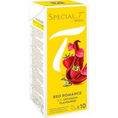 Profitez d'une délicieuse pause fruitée avec ce pack de 10 capsules Red Romance SPECIAL.T by Nestlé ! Une infusion biologique aux saveurs gourmandes de fraises, framboises et hibiscus sur un fond chaud vanillé. Une vague de tendresse se pose sur le monde, les sens étourdis par le charme envoûtant de Red Romance. Sa robe rouge rubis témoigne de sa volupté et vous enveloppe de douceur. On en redemande ! Infusion biologique de fruits aromatisée, hibiscus et réglisse. 10 capsules d'infusion bio de fruits aromatisée, hibiscus et réglisse pour machine Special.T