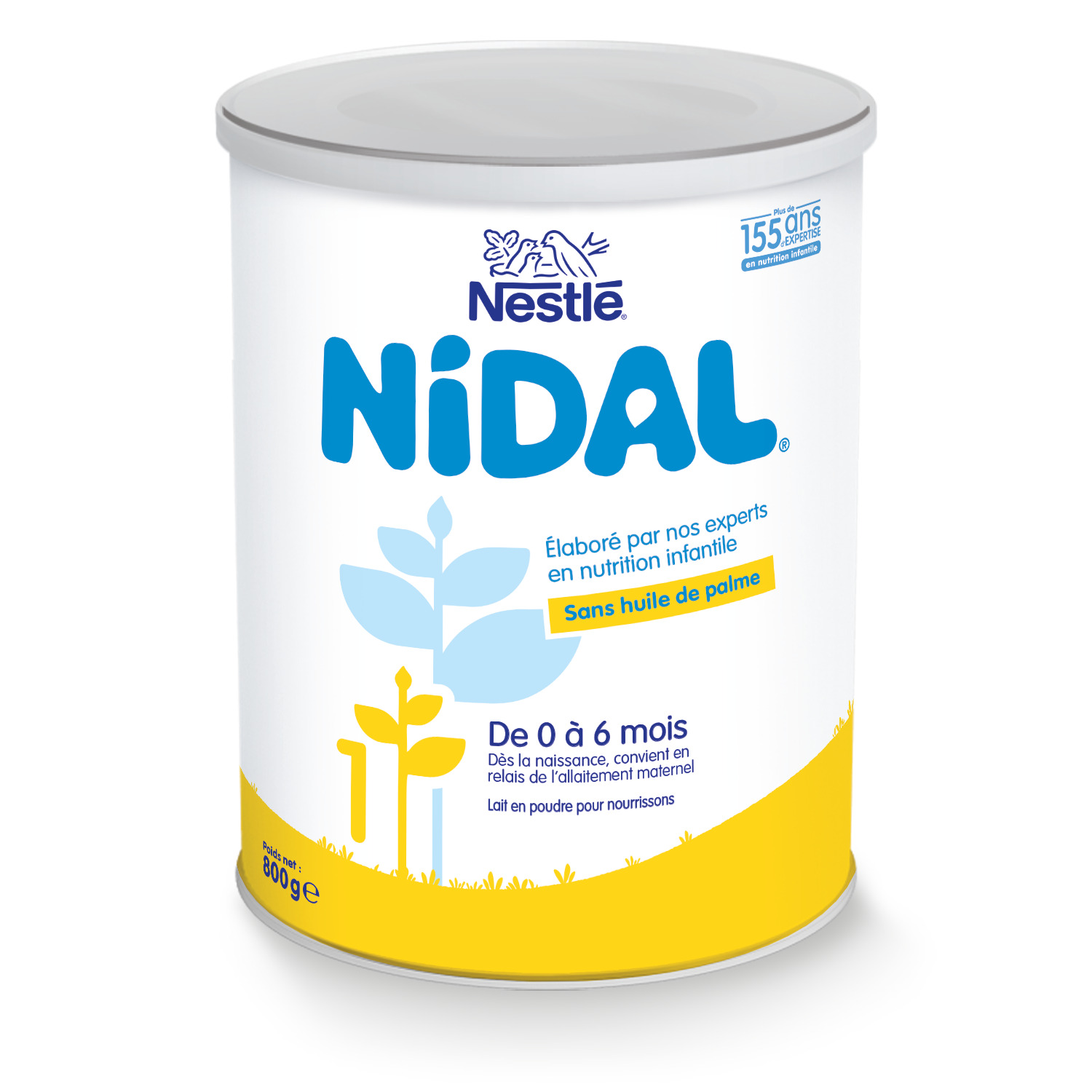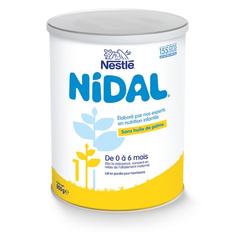 NESTLE NIDAL 1 convient à l'alimentation particulière des nourrissons de 0 à 6 mois dès la naissance quand ils ne sont pas allaités ou en relais de l'allaitement maternel*. *Conformément à la réglementation sur les préparations pour nourrissons.