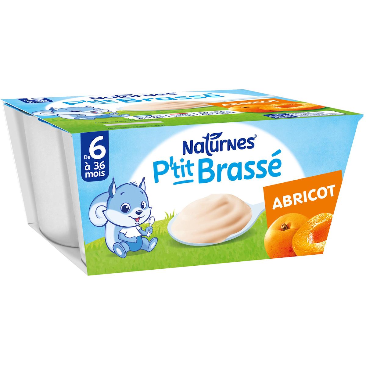 P'tit Brassé à l'Abricot, le laitage conçu exprès pour bébé* -50% de sucres minimum **. Produit dans les Vosges. Savoureux, ce laitage pour bébé dès l'âge de 6 mois se donne au goûter ou au dessert. Pratique pour les parents, ce petit pot destiné à bébé vous accompagne partout car jusqu'à son ouverture, il peut être conservé à température ambiante et non pas au frigo.*Conformément à la réglementation sur les aliments pour bébés. **- 55% Par rapport à la moyenne des yaourts, laits fermentés ou spécialités laitières aux fruits, sucrés - Ciqual 2020. Abricot origine UE.