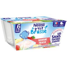 P'tit brassé petit pot dessert lacté à la banane et fraise sans sucres ajoutés dès 6 mois