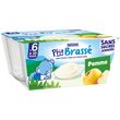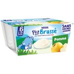 PTIT BRASSE Pomme Sans Sucres Ajoutés* avec 4 fois plus de fruits**. Un laitage conçu exprès pour bébé*** et produit à Arches dans les Vosges avec du lait français. Pratique, il s'emporte partout grâce à notre procédé de fabrication spécifique qui permet une conservation hors du frigo. *Contient des sucres naturellement présents. **Par rapport à la moyenne des P'tit Brassé aux fruits sucrés ***Conformément à la réglementation des aliments pour bébés. Pomme origine UE.