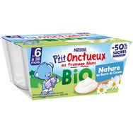 P'tit onctueux petit pot dessert fromage blanc nature au sucre de canne bio dès 6 mois