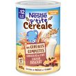 Découvrez P'TITE CEREALE aux céréales complètes Chocolat Saveur Biscuit dès 12 mois, des céréales exprès pour bébé* issues d'une démarche d'agriculture plus durable pour l'aider à bien démarrer la journée, avec un apport exclusif de 8 céréales, vitamines et minéraux. NESTLE® P'TITE CEREALE permet d'introduire en douceur le gluten dans son alimentation et de lui faire découvrir de nouveaux goûts et de nouvelles textures ! Le saviez-vous ? Les céréales complètes sont des céréales qui ont gardé leur enveloppe extérieure et leur germe, à la différence des céréales raffinées. Elles sont utilisées pour leur qualité nutritionnelle. Veillez à respecter l'appétit de votre bébé. *Conformément à la règlementation sur les céréales infantiles.