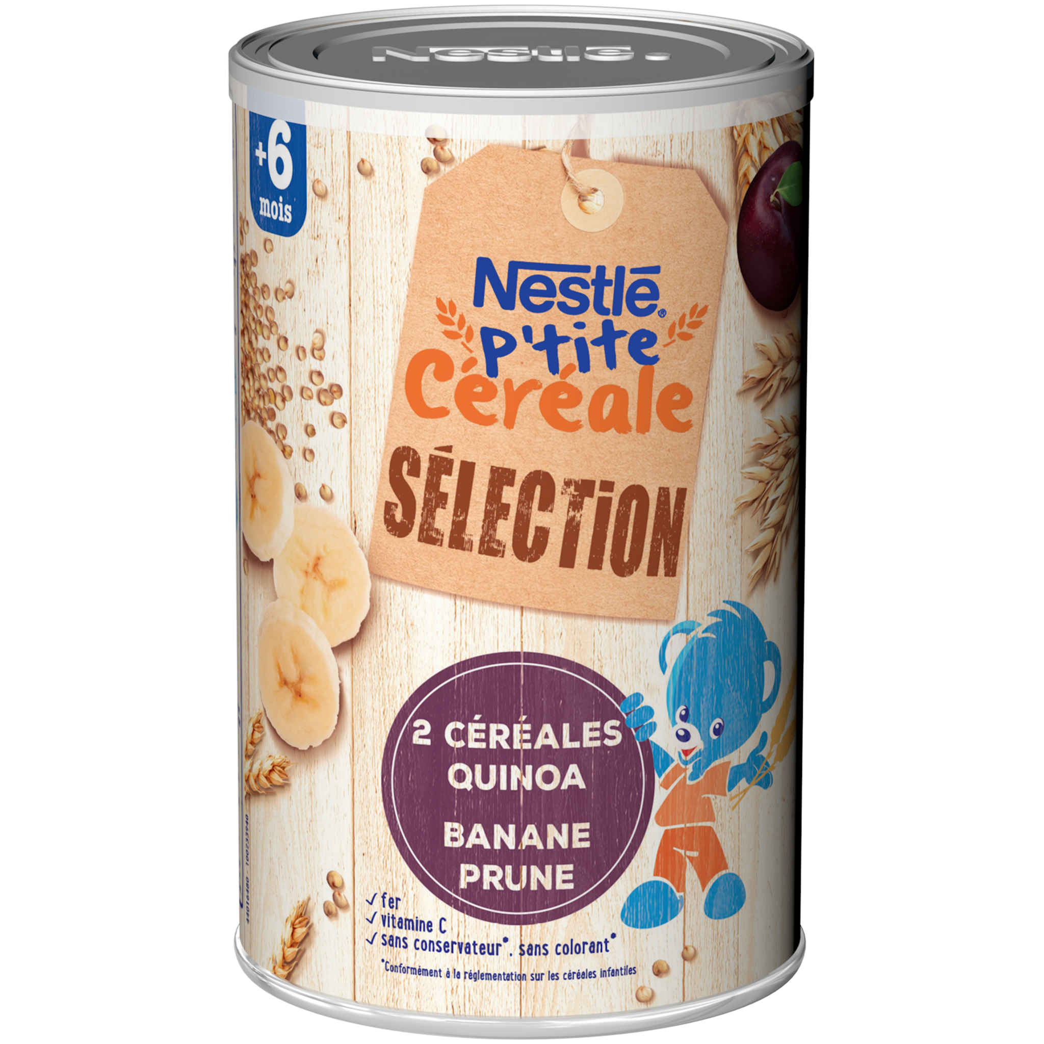 Céréale infantile pour nourrissons et enfants en bas âge NESTLE P’tite Céréale Sélection 6M propose la découverte de nouveaux goûts avec le Quinoa et les fruits. Ce produit permet d'introduire en douceur le gluten dans l'alimentation de bébé et de compléter son biberon de lait pour bien démarrer la journée avec un petit-déjeuner complet et équilibré. Le saviez-vous ? Dès 6 mois, 1 biberon seul peut ne plus suffire à couvrir les besoins nutritionnels du petit déjeuner. C'est le moment d'introduire les céréales.Veiller à respecter l'appétit de votre bébé