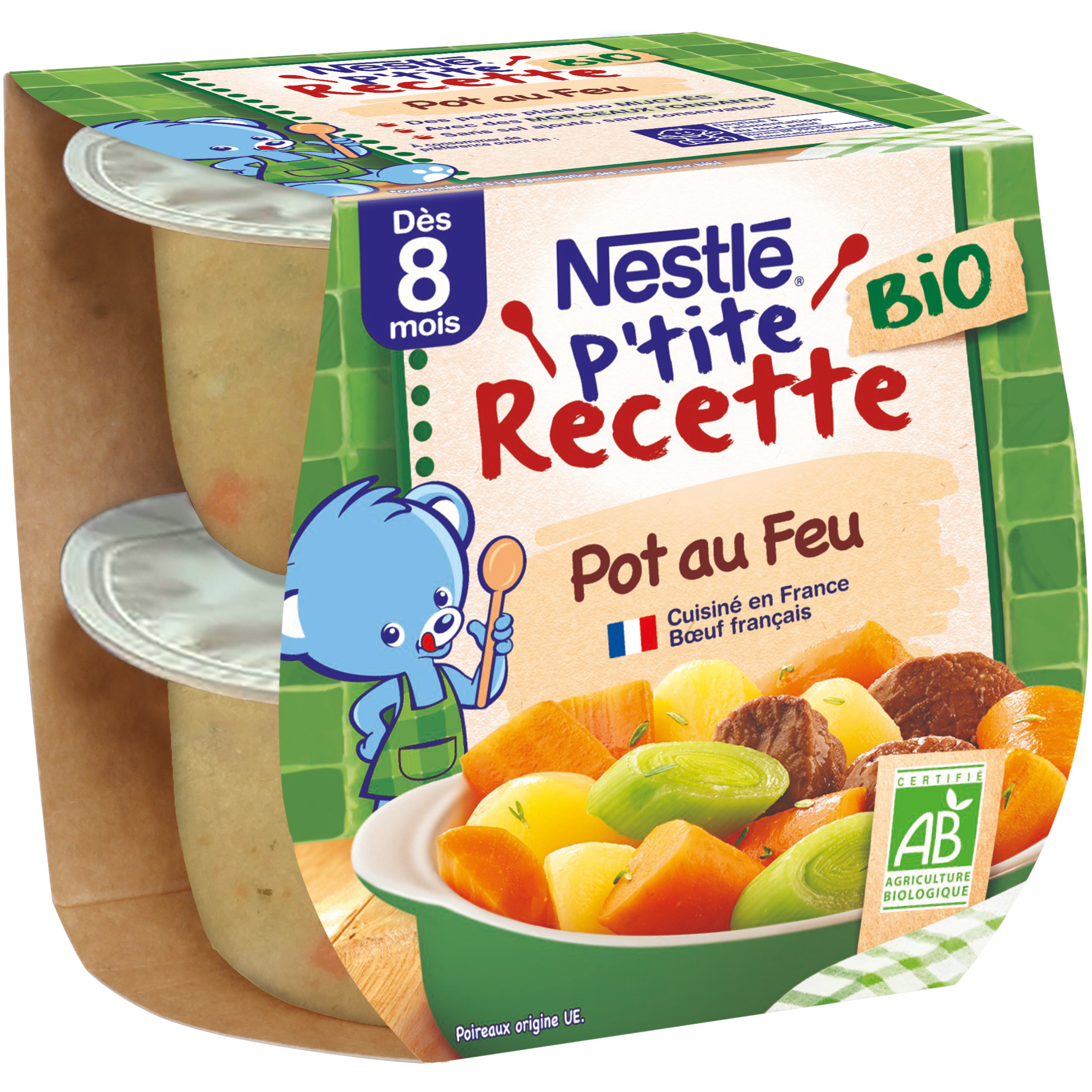 Découvrez notre petit plat BIO pour bébé P'TITE RECETTE BIO Pot au Feu : un grand classique de la cuisine française originaire de la Lorraine adapté à bébé dès 8 mois* avec des morceaux fondants pour initier bébé à de nouvelles textures. Des ingrédients issus de l'Agriculture Biologique, qui participe au respect de l'environnement et de la biodiversité**. Des légumes et de la viande de bœuf mijotés et parfumés de thym pour éveiller bébé à de nouvelles saveurs. Une recette cuisinée en France avec de la viande de bœuf française.Poireaux origine UE.