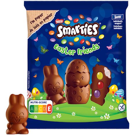 Pour Pâques, découvrez nos délicieuses figurines SMARTIES fourrées à la crème confiseur et aux délicieux SMARTIES. Leurs formes ludiques et festives vous feront craquer ! Un format idéal à partager et pour faire patienter avant la chasse aux oeufs. Avec le Plan Cacao NESTLE, et en partenariat avec Rainforest Alliance, SMARTIES s'engage pour une production plus durable de cacao et contribue à soutenir les cultivateurs et leurs communautés.