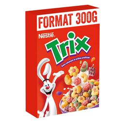 Découvrez les nouvelles céréales TRIX® dans un paquet de 300g : de délicieuses & croustillantes céréales avec 1 goût fruité et 6 formes de fruits inédites ! Les céréales TRIX® sont sans colorant* ni arôme artificiel et contiennent des céréales complètes.