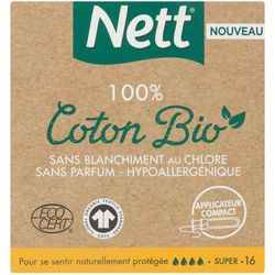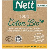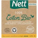 Nouveau tampon Nett 100% Coton Bio. Sans Blanchiment au chlore, sans parfum et hypoallergénique.