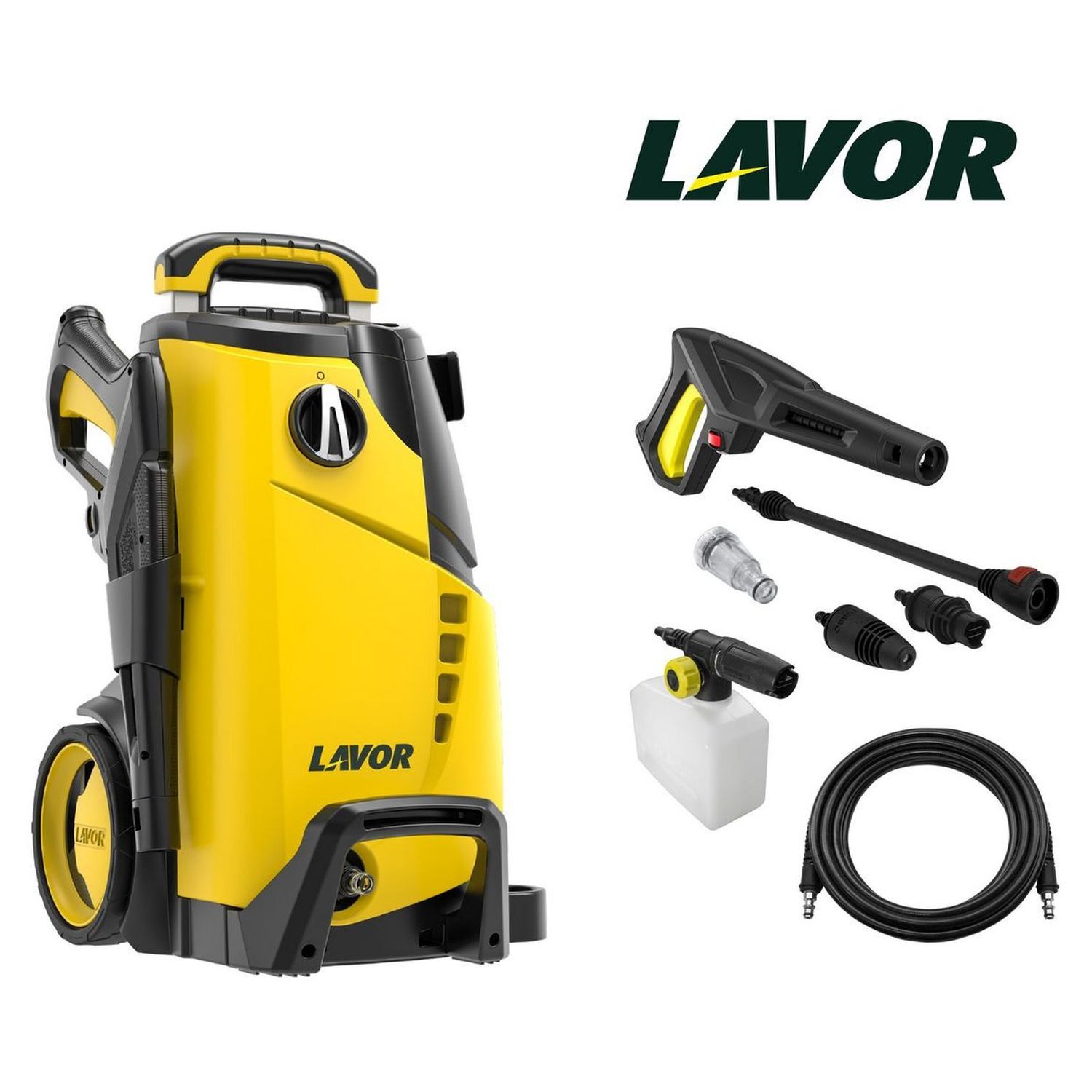 Equipé des accessoires suivants: Flexible haute pression de 6 m / Pistolet avec raccord rapide / Lance pour buse interchangeable / 2 buses (1 VARIOJET, 1 TURBO) / Filtre d'eau / Diffuseur de détergent avec bidon / Chariot avec poignée ergonomique et porte-accessoires / Système d'arrêt automatique