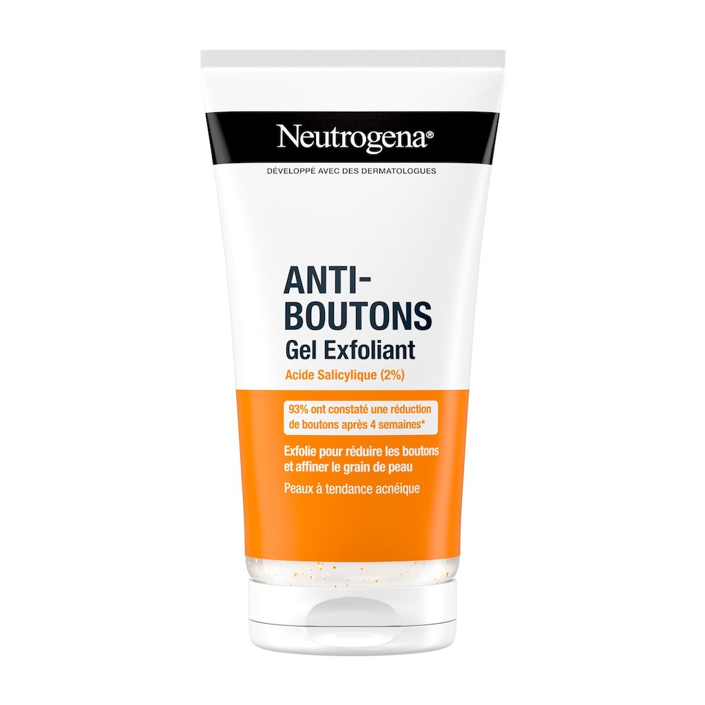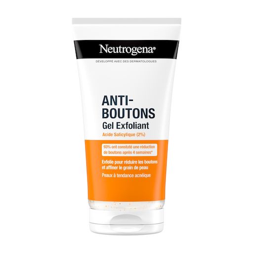 Développé avec des dermatologues, le Gel Exfoliant Anti-Boutons Neutrogena est spécialement formulé pour les peaux à tendance acnéique. Enrichi en 2 % d’acide salicylique, ce gel exfoliant aide à prévenir la réapparition des boutons tout en affinant le grain de peau.