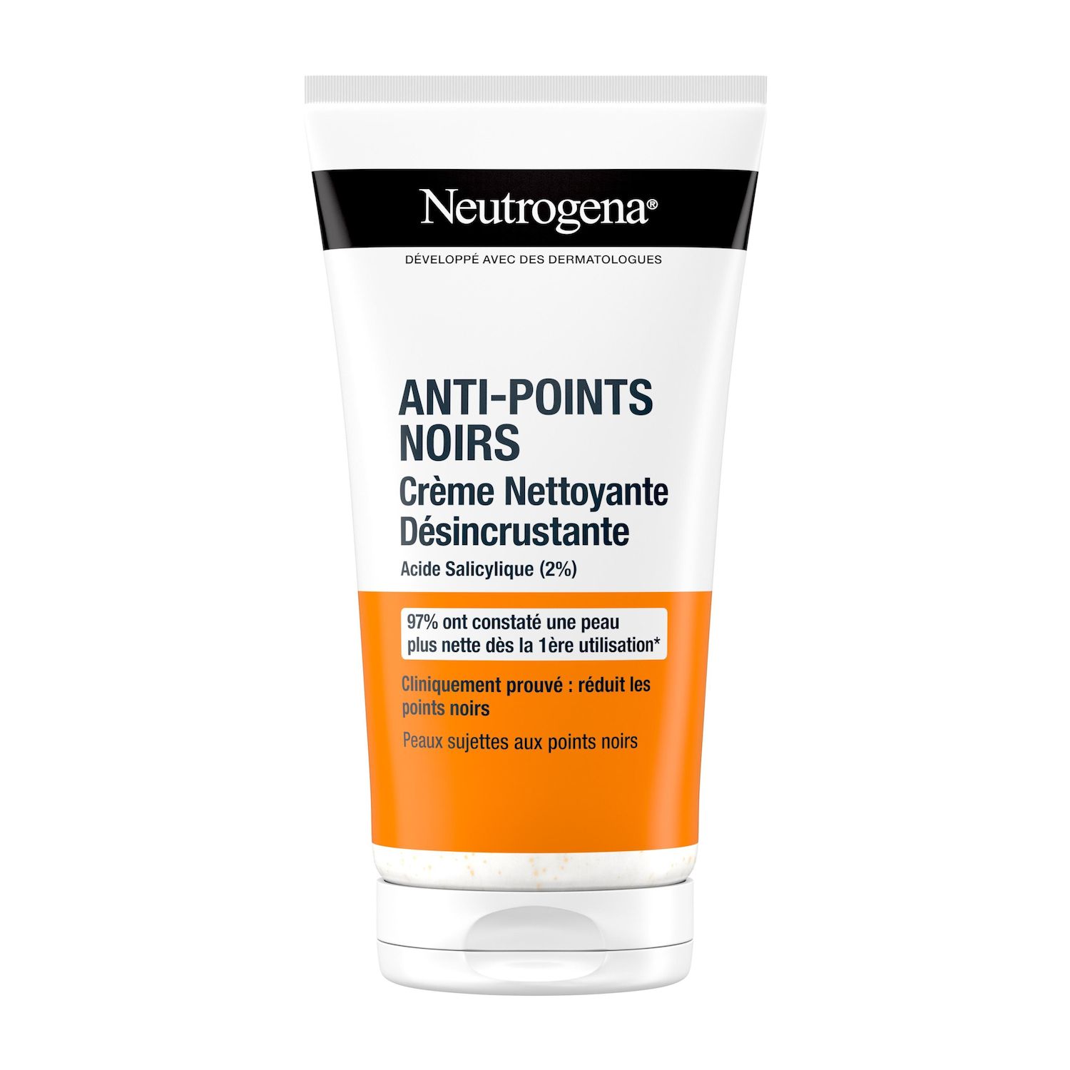 Développée en collaboration avec des dermatologues, la Crème Nettoyante Désincrustante Neutrogena Anti-Points Noirs est spécialement formulée pour les peaux sujettes aux points noirs. Avec une concentration de 2 % d’acide salicylique, ce nettoyant agit efficacement pour éliminer et prévenir la réapparition des points noirs dès la première utilisation.