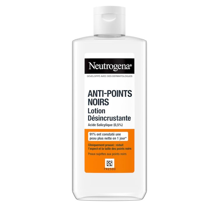 Développé avec des dermatologues, la Lotion Désincrustante Neutrogena Anti-Points Noirs est spécialement formulée pour les peaux sujettes aux points noirs. Enrichie avec 0,5 % d’acide salicylique, cette lotion aide à réduire l’apparence et la taille des points noirs, pour un teint visiblement plus net et affiné dès le premier jour**.