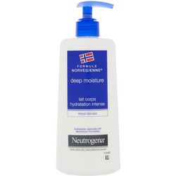 Lait Corps Hydratation Intense Peaux Sèches Même quand vous vous hydratez la peau, vous avez l'impression qu'elle redevient sèche après seulement quelques heures ? La solution Neutrogena® : un lait corps quotidien qui agit en profondeur* dans votre peau pour apporter une hydratation intense en seulement 1 application et pendant 24 heures. Son secret : sa Formule Norvégienne® est scientifiquement prouvée pour diffuser son hydratation active jusqu'à 10 couches en profondeur dans la peau*, là où elle en a le plus besoin. • Dès la 1ère application, et pendant 24 heures, votre peau est intensément hydratée, la laissant confortable, souple et veloutée au toucher. • Jour après jour, vous retrouvez une peau durablement hydratée, belle et rayonnante. Délicatement parfumée, sa texture fond instantanément au contact de la peau sans laisser de sensation grasse. Elle permet de s'habiller directement après l'application. *couches supérieures l'épiderme