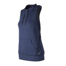 Découvrez ce t-shirt sans manche et à capuche pour femme signé New Balance ! Couleur : Marine Coupe ajustée Capuche avec liens de serrage Sans manches Empiècement en filet dans le dos Poche kangourou 88% polyester, 12% élasthanne