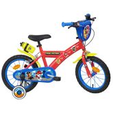 Vélo 14 Garçon Licence Pat Patrouille pour enfant de 95/110 cm - Cadre Acier - Direction et pédalier en nylon - Roue libre monovitesse - Freins avant et arrière Calliper -Selle réglable - Carter de chaîne intégral - Gardes boue et poignées spécifiques pour augmenter la protection de l'enfant - Jantes à rayons - Pneus gonflables noirs - Stabilisateurs (montage sans outil) - Plaque décorative avant - Porte bidon - Gourde - Avertisseur sonore - Eclairage à piles fournies - Catadioptres de roues