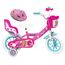 Vélo 12 Fille Licence Pat Patrouille à l'effigie de Stella + Casque pour enfant de 85/100 cm - Cadre Acier - Direction et pédalier en nylon - Transmission monovitesse - Pignon fixe - Frein avant Calliper - Carter de chaîne intégral - Gardes boue et poignées spécifiques pour augmenter la protection de l'enfant - Roues bâtons - Pneus EVA increvables - Stabilisateurs (montage sans outil) - Panier - Porte poupée - Avertisseur sonore