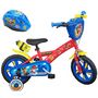 Vélo 12 Garçon Licence Pat Patrouille + Casque pour enfant de 3 à 5 ans - Cadre Acier - Direction et pédalier en nylon - Transmission monovitesse - Pignon fixe - Freins avant Calliper - Carter de chaîne intégral - Gardes boue et poignées spécifiques pour augmenter la protection de l'enfant - Roue