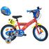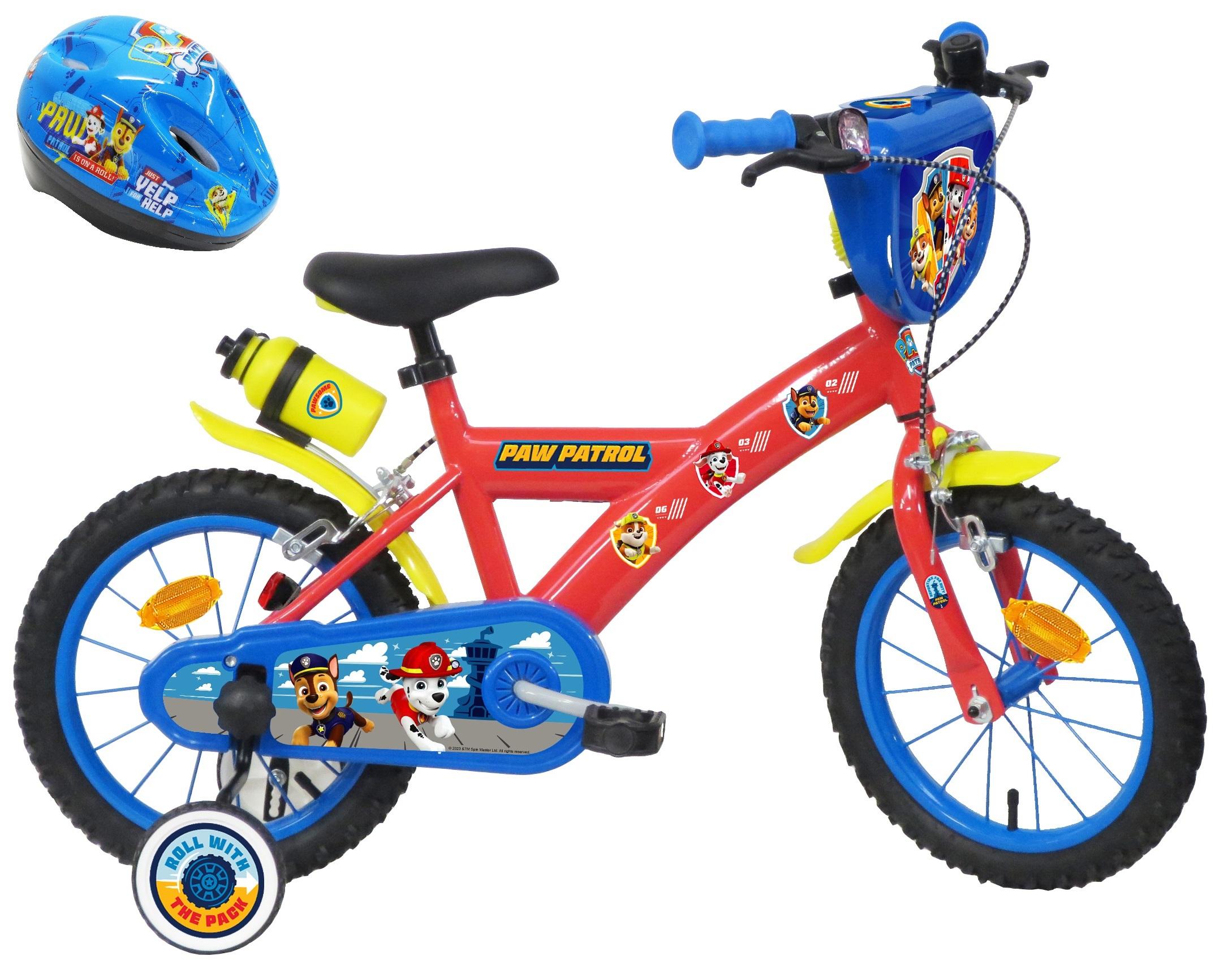 Vélo enfant - Modèle 14'' Pat Patrouille + Casque pour enfant de 95/110 cm avec stabilisateurs - 2 freins - Plaque décorative avant - Porte bidon