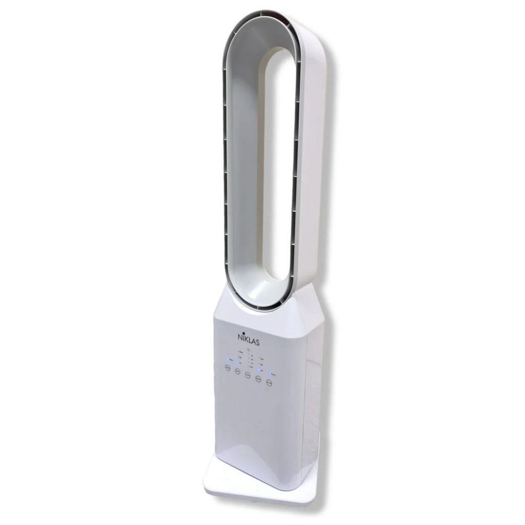 Ventilateur à Télécommande 50W - Ventilateur Sans Pales Colonne 3 Vitesses avec Minuterie 7h Design Blanc NIKLAS