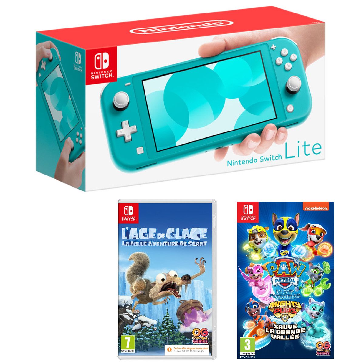 Console Nintendo Switch Lite Turquoise + L'âge de Glace : La folle Aventure de Scrat Code de téléchargement + Pat? Patrouille : La Super Patrouille Sauve la Grande Vallée code de téléchargement